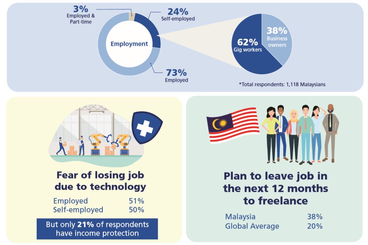 A total of 1,118 working-age Malaysians were engaged in this survey. Key findings for Malaysia include: